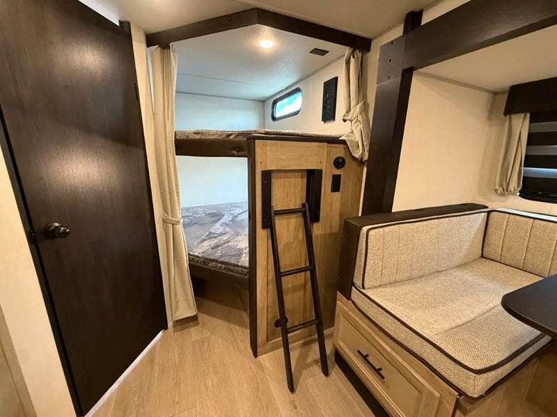 Sleeps 9 Slides 1 Length 23 ft 9 in Ext Width 8 ft Ext Height 10 ft 6 in Int Height 0 ft Hitch Weight 760 lbs GVWR 7760 lbs Dry Weight 6573 lbs Cargo Capacity 1187 lbs Fresh Water Capacity 52 gals Grey Water Capacity 38 gals Black Water Capacity 38 gals Furnace BTU 20000 btu Number Of Bunks 2 Available Beds RV King Refrigerator Type 12V Cooktop Burners 3 Number of Awnings 1 Water Heater Type Tankless AC BTU 15000 btu Cargo Deck Size 0 ft Awning Info 15' Full Length Power w/LED Light Strip Axle Count 2 Shower Type Tub/Shower Combo Solar Wattage 200 watts Similar Floorplans