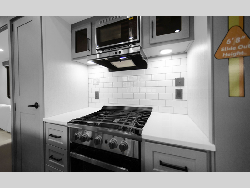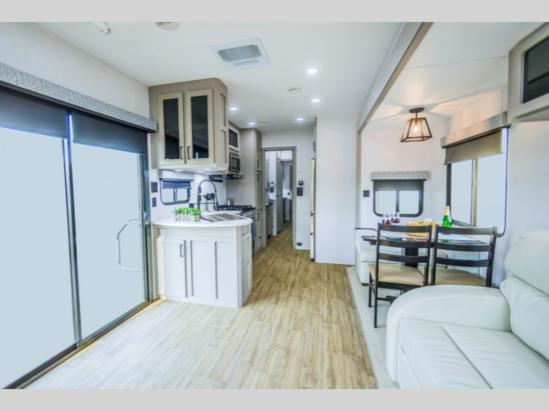 Sleeps 7 Length 33 ft Ext Width 8 ft 5 in Ext Height 14 ft Hitch Weight 1580 lbs Furnace BTU 40000 btu Cooktop Burners 3 LP Tank Capacity 30 lbs Water Heater Type On Demand Axle Count 2 Number of LP Tanks 2 Shower Type Shower w/Seat Electrical Service 50 amp Similar Floorplans