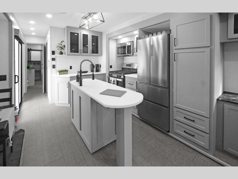 Sleeps 7 Slides 4 Length 43 ft Ext Width 8 ft 5 in Ext Height 14 ft Hitch Weight 1530 lbs Furnace BTU 40000 btu Cooktop Burners 4 LP Tank Capacity 30 lbs Water Heater Type On Demand Axle Count 2 Washer/Dryer Available Yes Number of LP Tanks 2 Shower Type Shower w/Seat Electrical Service 50 amp Similar Floorplans